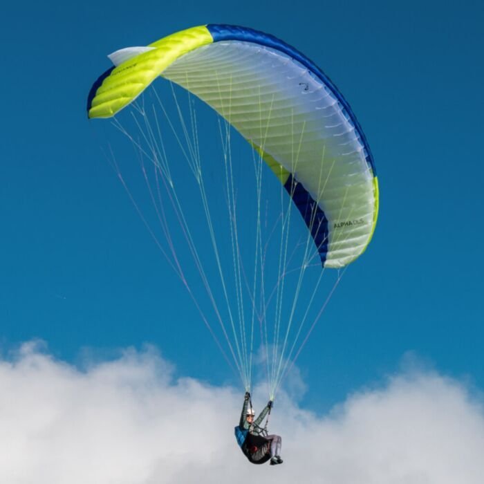 The ALPHA series stands out with its clear line setup and colour-coded risers and brake handles, making ground handling especially intuitive. The wing launches effortlessly and is exceptionally easy to fly, thanks to its balanced pitch and roll behaviour.