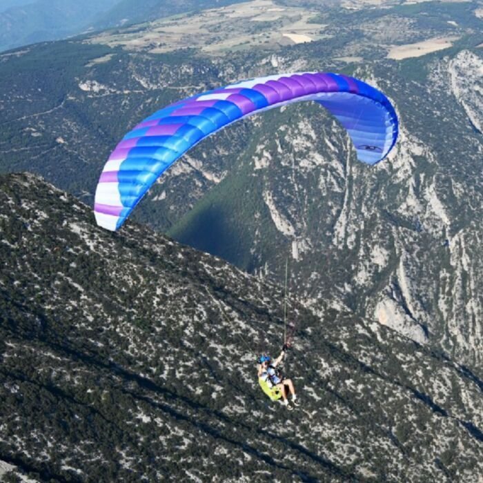 The Anda was developed as a lightweight EN-A wing that’s beginner-friendly. It’s a hike-and-fly wing that anyone can fly, and packable for travelling with. It has good performance and fun handling, so you can ride the early-morning thermals, soar the sunset cliffs or launch from a high mountain safe in the knowledge you have a good reach to the landing. It would be a good first wing for a careful new pilot who enjoys hiking, but as with all lightweight wings, it needs to be treated with care.