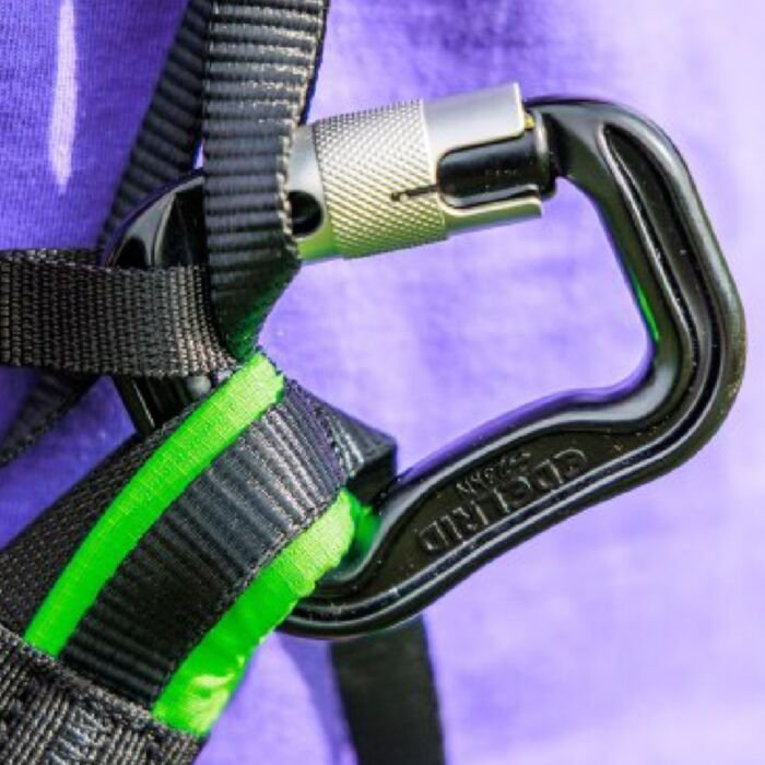 Edelrid karabiners are used for the main hang points, chosen for their light weight and reliability.