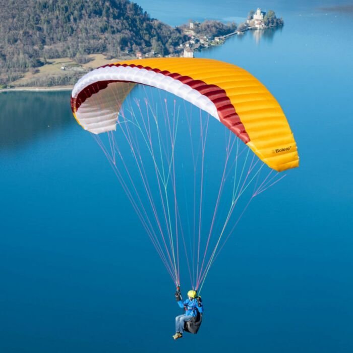 Safety is paramount in a beginner wing, and the Bolero 7 is probably our most stable wing ever in terms of pitch and roll. Yet the wing is also great fun to fly, tight flat turns are possible and it’s easy and intuitive to vary the bank. There is zero tendency to enter a spiral dive in case the pilot inadvertently pulls too much brake.