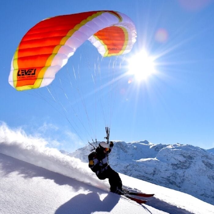 The specific concept of short lines introduced by Level Wings on its Speedriding wings Aims to minimise parasital pendular and inertial reactions of the wing during your ride in order to free up the direct piloting ( and fun !) while you make happen your best lines and goals.