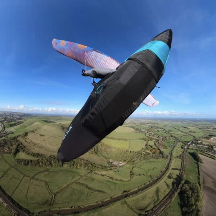 Careful aerodynamic simulations produced optimised airflow and aerodynamic shape. The result is this new hybrid harness, much more optimised and high performing than a classic harness. The shape of the fairing integrates the pilot’s head and shoulders to avoid turbulence.