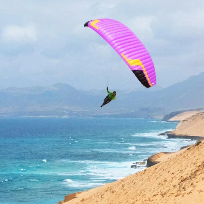 Due to its weight (3 kg in size 14) and its reduced aspect ratio, the Roller 2 is a very agile and energetic glider. With dynamic handling and responsive manoeuvrability, total control is assured. It is fast and safe in turns.