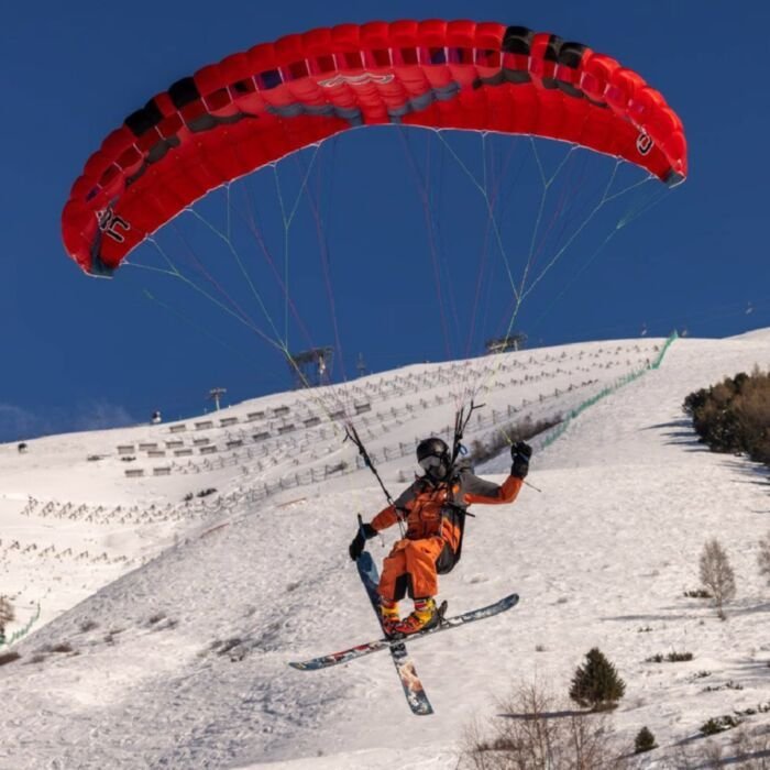 The Arc has been optimized for winter Speedriding in every step of its design – empowering pilots to aggressively ski even the steepest of mountains, while remaining intimately connected to their wing. The Arc’s shortened line-lengths, extensive trim-range, and deep-brake power all allow active skiing, while maintaining the ability to rapidly take-flight at a moment’s notice.