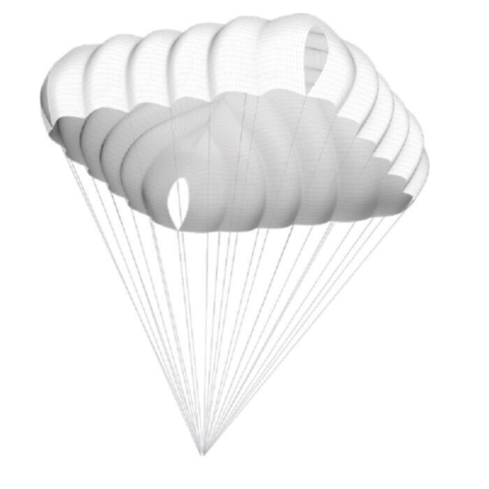 Due to the symmetrical design of all skywalk rescue parachutes (PEPPER CROSS LIGHT, SALSA and TAPA X-ALPS), there is no system-related forward drift. This reduces the risk of incalculable drift. The low sink rate is not achieved by a forward motion, but by a large surface area.