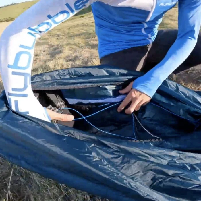 Flybubble Note: Ultra-light gear must be handled with care to extend its lifespan. Mechanical stresses and improper handling can cause faster wear and tear compared to standard-weight gear. Designed for hike and fly activities, ultra-light gear prioritizes weight savings over durability and other factors. To avoid damage, refrain from extreme activities or excessive ground handling. Gentle treatment is crucial for longevity and safe operation.